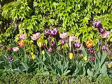 ![]() مجموعة مُنسَّقة من زهور التوليب في سنترال پارك، بمدينة نيويورك | |