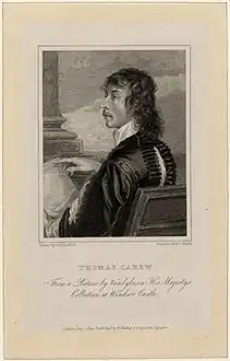 |CitationClass=تم تجاهله (مساعدة) - Thomas Carew (1870). The Poems of Thomas Carew: Sewer in Ordinary to Charles I. and a Gentleman of His Privy Chamber. Roxburghe Library. صفحات 242–. مؤرشف من الأصل في 22 مارس 2020. الوسيط