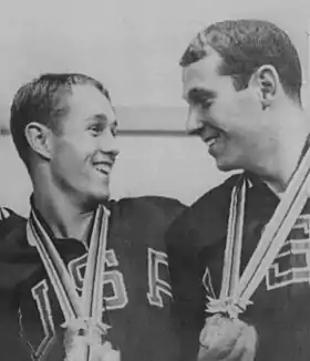 ![]() مان (يسارًا) خلال دورة الألعاب الأولمبية لسنة 1964 | ||||
