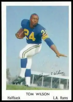 - "Tom Wilson, 74; former Rams halfback fought to get benefits for NFL retirees". لوس أنجلوس تايمز. January 7, 2007. مؤرشف من الأصل في 4 أغسطس 2016. اطلع عليه بتاريخ 10 مارس 2012. الوسيط