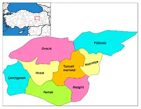 - "After 78 years, Turkey to restore Tunceli's original name". TodaysZaman. مؤرشف من الأصل في 24 فبراير 2016. اطلع عليه بتاريخ 16 فبراير 2016. الوسيط