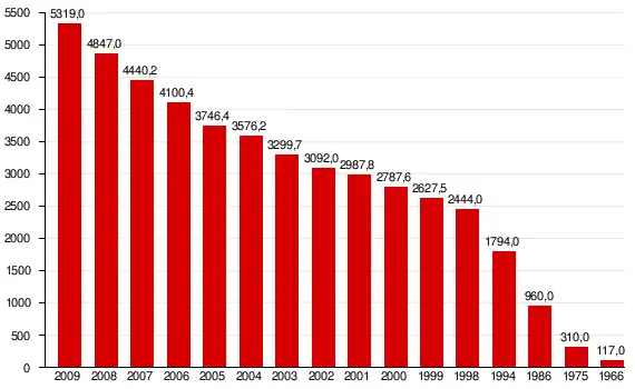 |CitationClass=تم تجاهله (مساعدة) - "Country Comparisons - GDP - per capita (PPP)". كتاب حقائق العالم (وكالة المخابرات الأمريكية). 2009-05-14. مؤرشف من الأصل في 29 مايو 2019. اطلع عليه بتاريخ 19 أغسطس 2010. الوسيط
