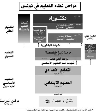 - (بالفرنسية) Présentation du système éducatif tunisien (Académie de Nancy-Metz) نسخة محفوظة 1 مايو 2014 على موقع واي باك مشين.
