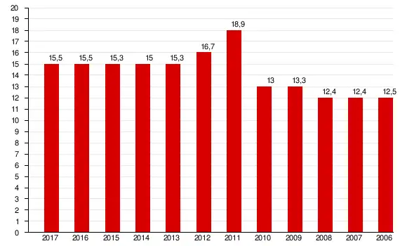 | معدل الضريبة القيمة المضافة | 18 نسبة مئوية |