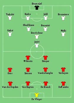 في مقابلته الثانية في 10 يونيو 2002، تعادل منتخب تونس أمام منتخب بلجيكا بنتيجة 1-1. انطلقت المباراة، التي حضرها جمهور قدر بـ 39,700 متفرج، على الساعة 18:00