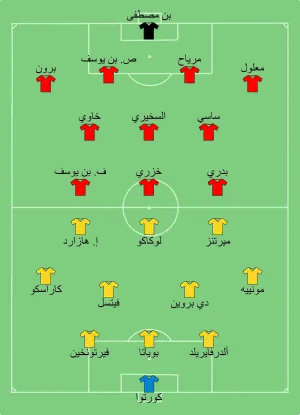 |CitationClass=تم تجاهله (مساعدة); تحقق من التاريخ في:|تاريخ الوصول=(مساعدة) - "Tactical Line-up – Group G – Belgium-Tunisia" (PDF). FIFA.com. Fédération Internationale de Football Association. 23 يونيو 2018. مؤرشف من الأصل (PDF) في 23 يونيو 2018. اطلع عليه بتاريخ 23 يونيو 2018. الوسيط