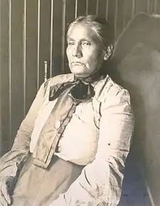 | صورة فوتوغرافية تعود لسنة 1905 للسيدة جيمز روزمير (اسمها الأصلي: نارسيزا هيغويرا)، وهي واحدة من آخر متحدثي اللغة التونغفية الطلقين. شكلت مصدر معلومات لعالم وصف الإثنيات البشرية كلينتون هارت ميريام، وكانت مصدر تسمية «تونغفا» المحلية المستخدمة على نطاق واسع.[1] |