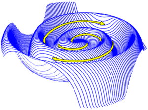 يتشابك الحقل المغناطيسي مع البلازما الشمسية نتيجة دوران الشمس على شكل حلزون باركر. ينقسم حلزون باركر المغناطيسي إلى نصفين بواسطة تيارين دوريين،[4] وقد طور النموذج الرياضي في سنة 1970. الإعوجاج في شكل الحلزون مائج يشبه بتنورة راقصة الباليه