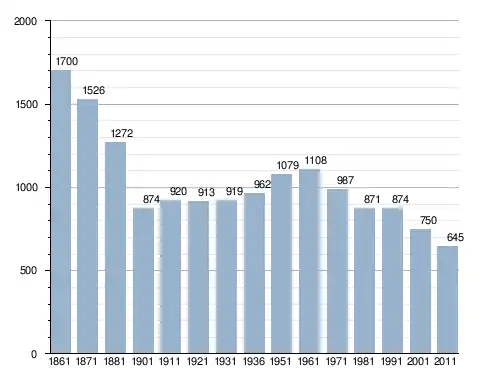 في سنة 1861 بلغ عدد السكان 1٬700 نسمة، وتطور العدد ليصل في سنة 2011 لـ 645 نسمة.