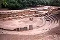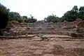على عكس تيمقاد وجميلة التي تشهد أنقاض متماسكة ويمكن قراءتها بسهولة،، تقدم تيبازة موقع مقسم. ويرجع ذلك إلى عدم تطهير المكان وأن جزء كبير من المدينة لا يزال تحت الرواسب. للحصول على أدلة على بقايا الحمامات الحرارية العظيمة، على طول الشارع الذي يربط المتحف إلى الحديقة الأثرية، التي تبلغ قاعدتها أربعة أمتار تحت مستوى سطح الأرض الحالي. في الحالة الراهنة، أنقاض تقدم نفسها في اثنين من الجماهير العظيمة. الأولى، تقع خارج الجدران، عند مدخل المدينة الحالية، على يمين الطريق الذي يأتي من الجزائر، يتوافق مع مقبرة كبيرة مع كنيسة الجنائزية سانتا سالسا. والثاني هو الحديقة الأثرية، وتقع في الضواحي الغربية للمدينة الحديثة، التي تحتوي على معظم الآثار التي كشف عنها.