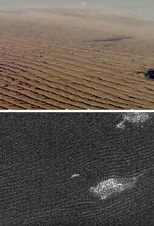 |CitationClass=تم تجاهله (مساعدة) - "Cassini Sees the Two Faces of Titan's Dunes". JPL, NASA. مؤرشف من الأصل في 1 يونيو 2017. الوسيط