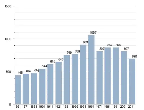 في سنة 1861 بلغ عدد السكان 445 نسمة، وتطور العدد ليصل في سنة 2011 لـ 690 نسمة.