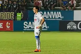 و هو يلعب مع منتخب تايلند لكرة القدم.