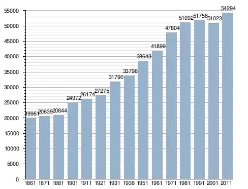 في سنة 1861 بلغ عدد السكان 19٬961 نسمة، وتطور العدد ليصل في سنة 2011 لـ 54٬294 نسمة.