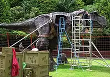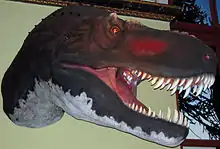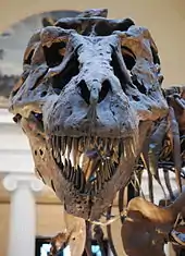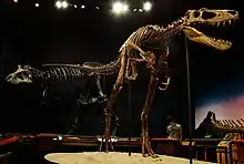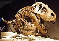 ![]() هيكلٌ عظميٌّ لِتيرانوصورٌ ملك معروضٌ في متحف كارنيجي للتاريخ الطبيعي | |