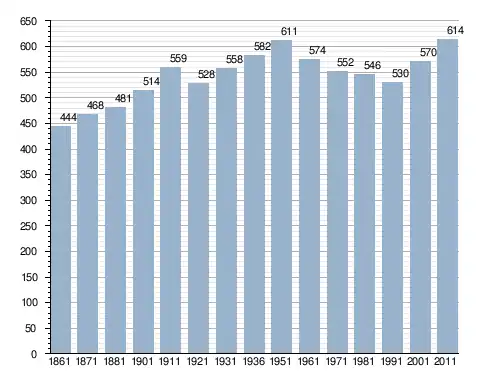 في سنة 1861 بلغ عدد السكان 444 نسمة، وتطور العدد ليصل في سنة 2011 لـ 614 نسمة.