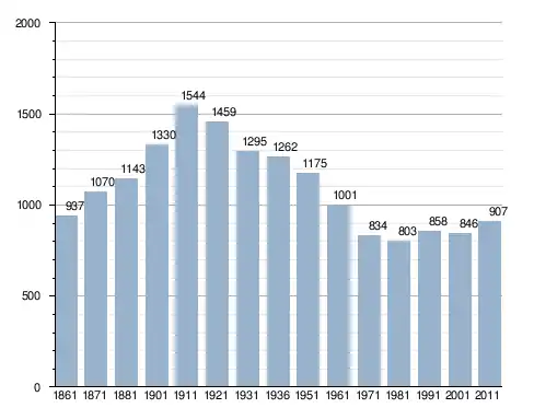 في سنة 1861 بلغ عدد السكان 937 نسمة، وتطور العدد ليصل في سنة 2011 لـ 907 نسمة.