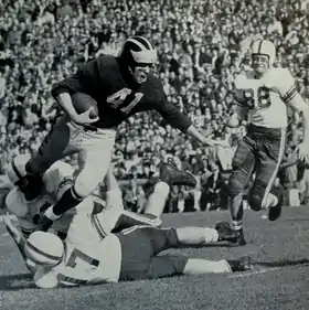 |CitationClass=تم تجاهله (مساعدة) - Joe Falls (October 7, 1955). "Michigan Shatters Army Jinx, Downs Cadets 26 to 2: Win Behind Violent Running of Terry Barr". Park City Daily News. مؤرشف من الأصل في 3 مايو 2016. الوسيط