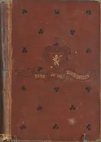 ![]() الغلاف الأمامي لنسخة 1892 لرواية تيس أوڤ ذي ديربيرڤلز: امراة نقية مقدمة بأمانة، تم النشر بواسطة هاربير& بروس، إن واى | |