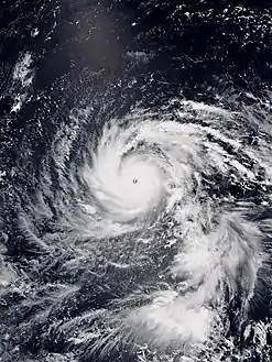 ![]() تيفون جيبي في شدة ذروته غرب جزر ماريانا الشمالية في 31 أغسطس 2018 | |