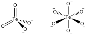بنية أنيون أورثو-تيلورات (يمين) وأنيون ميتا-تيلورات (يسار).