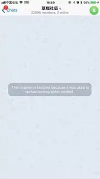 تعرّض تيليجرام في بعض البلدان للرقابة مثل حجبهِ في روسيا وكذا في إيران أو حتى الحجب على ضوء الاتهامات التي واجهها التطبيق بمساعدته على تسهيل حصول أنشطة مخالفة للقانون مثل الإرهاب بالإضافة إلى الطلب المتناقص لتسهيل وصول الحكومة إلى بيانات الأفراد واتصالاتهم ومعلوماتهم الشخصية.