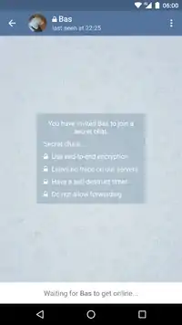 كما هو معروفٌ فلا يُمكن بدأ درشة سريّة إلّا بعد قبول الطرف الثاني دعوة يتم تبادل مفاتيح التشفير الخاصة بها للجلسة وتُتيح شبكة تيليجرام للمستخدمين في محادثة سرية التحقق من عدم حدوث أي هجوم في الوسط عن طريق مقارنة الصور التي تصور بصمات أصابع المفتاح العام الخاصة بهم.[79] جديرٌ بالذكر هنا أنّ تيليجرام قد بدأَ في دعمِ الدردشات السرية منذ كانون الثاني/ديسمبر 2014 وهو الآن يعملُ بشكلٍ دوريّ على تغيير مفاتيح التشفير بعد استخدامها لأكثر من 100 مرة أو بعدَ استخدامه لأكثر من أسبوع؛[57] في حين يتم تدمير مفاتيح التشفير القديمة.[44][45][80]