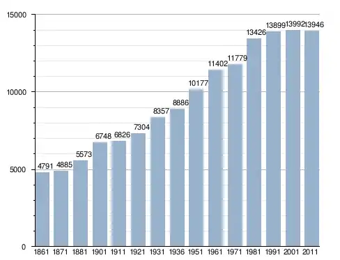 في سنة 1861 بلغ عدد السكان 4٬791 نسمة، وتطور العدد ليصل في سنة 2011 لـ 13٬946 نسمة.