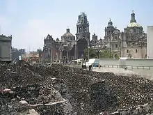 ومن ثم بنيت مدينة مكسيكو الحديثة على أنقاض عاصمة الأزتك تينوتشتيتلان. وقد قام الإسبان بردم وتجفيف معظم بحيرة تسكسوكو، وبنيت مدينة مكسيكو على مساحة كبيرة منها.