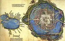 تينوتشتيتلان (Tenōchtitlan) كانت عاصمة إمبراطورية الآزتك، بنيت في سنة 1325م، وتقع في جزيرة في وسط بحيرة تيكسوكو بالمكسيك. ولقد حكم الآزتك مساحة كبيرة من وسط المكسيك، وكان للمدينة دورا هاما في تطور الإمبراطورية، حيث احتوت على المراكز الحكومية، والأسواق الكبيرة، والمعابد الدينية الهامة. وفي عام 1519م، وعندما وصل الغزاة الإسبان بقيادة إرنان كورتيس للمدينة أعجب بها كورتيس ولكنه قرر مهاجمتها، فغزا الإسبان وحلفاؤهم من تلاكسكالا مدينة تينوتشتيتلان، وقد سقطت في عام 1521.[1]