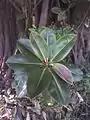 Ficus elastica near the roadside in Savusavu, Fiji, showing the effects of constant pruning on the growth form.