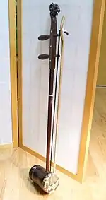 يحمل تيهو بوضع الجزء الرنان بين الركبتين، ويعتبر آلة أساسية في ثقافة شاوزو شانشي. كما يتميز بحدة صوته المنخفضة والعزف عليه يكون بطيئا مقارنة بآلة إريشيان التي تنتمي إلى نفس العائلة.
