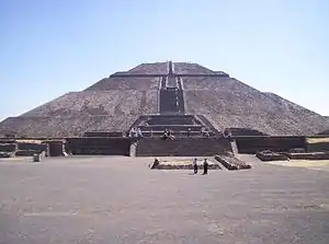 تيوتيهواكان (Teotihuacan) هي مدينة أثرية قديمة قرب مكسيكو سيتي في وسط المكسيك وتدعى أيضا تيوتيواكان ، وازدهرت بين عامي 200 م و750 م تقريبا. بها أهرام للشمس والقمر ومدافن وقصور ومساكن كثيرة وكانت مساحتها 12 كم مربع في أوج ازدهارها . تقع مدينة تيوتيهواكان على بعد نحو 40 كيلمترا شمال شرق مدينة مكسيكو عاصمة المكسيك. يتألف مركز تيوتيهواكان من طريق طويل يميل بإتجاه الشرق بنحو 17 درجة ويعرف باسم أزتكي . وتنتظم على جانبي الشارع معابد صغيرة وهرم الشمس المدرج الهائل من الناحية الشرقية والفناء الذي أطلق علية الإسبان كيوداديلا أو القلعة . يضم الفناء معبد كيوانزكواتل و هناك قصر في النهاية الشمالية للشارع تحيط به أبنية المعابد و هرم القمر . و قد كانت المدينة مبنية على تصميم متعامد مثل المدن العصرية و شيدت مجمعات كبيرة كي تطابق التصميم الأصلي و قد ضم المجمع السكني في تيوتيهواكان عددا من الأفنية المفتوحة تحيط بها الأروقة المعبدة المسقوفة تفضي إلى غرف . و كان هناك في أغلب الظن معبد صغير لأهالي المجمع . في الإمكان استنتاج أن المجمعات كانت تقطنها أسر كبيرة مع خدمها . و يطلق على السمة المعمارية المميزة له اسم "ثالود تابليدو " .ونحت على التابليدرات في معبد كيزواتزكواتل جسم متموج لثعبان يكسوه الريش و أصداف بحرية و رؤوس للثعابين المكسوة بالريش . و كان هناك 360 رأسا تماثل أيام السنة و البناية الوحيدة الأخرى التي تنفرد بهذه السمات التقويمية هي معبد الكوات في آيل تاجين.