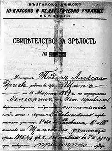 درس في تسالونيكي في صالة للألعاب الرياضية البلغارية ومدرسة البلغارية التربويه في سكوبيه، حيث التحق Internal Macedonian Revolutionary Organization تحت تأثير مدير المدرسة خريستو الحرير، مؤسس المنظمة الثورية. وشارك في الانقلاب المسلح ضد الامبراطورية، ألقي القبض عليه وإدانته، ولكن أفرج عنه بموجب عفو.