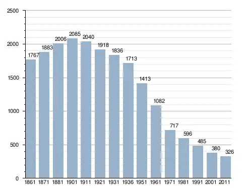 في سنة 1861 بلغ عدد السكان 1٬767 نسمة، وتطور العدد ليصل في سنة 2011 لـ 326 نسمة.