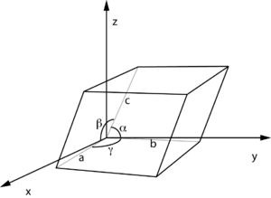 ثابت الشبكة البلورية (ملاحظة 1) عبارة عن توصيف لأبعاد وحدة الخلية في الشبكة البلورية وذلك بوصف المسافات a وb وc والزوايا المتشكلة بينها α وβ وγ للنظم البلورية المختلفة. على سبيل المثال في النظام البلوري المكعب نقتصر على بعد واحد وهو a والزاوية تكون 90°.
