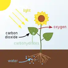 يتحول تحويل ثاني أكسيد الكربون إلى سكريات في عملية تسمى تثبيت الكربون، وهو تفاعل اختزال ماص للحرارة، وبالتالي يجب فيه أن يستمد الكائن من التمثيل الضوئي مصدراً للطاقة لدفع التفاعل وكذلك الإلكترونات اللازمة لتحويل ثاني أكسيد الكربون إلى كربوهيدرات، وإضافة الإلكترونات هذه هي تفاعل اختزالي. ويعد التمثيل الضوئي -عامة- عملية معاكسة للتنفس الخلوي، إذ يتأكسد فيه الجلوكوز ومركبات أخرى لإنتاج ثاني أكسيد الكربون والماء، كما تتحرَّرُ فيه طاقة كيميائية طاردة للحرارة لدفع عملية التمثيل الغذائي للكائن الحي (على أن عمليتي التنفس والتمثيل الضوئي تحدثان بسلسلة تفاعلات وأجهزة خلوية مختلفة). وتستمد معظم الكائنات التي تعيش على التمثيل الضوئي طاقتها من الطيف المرئي للضوء، على أن حفنةً منها تستمد طاقتها من الأشعة تحت الحمراء.[61]