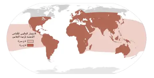 ![]() التوزيع العالمي التقريبي للأفاعي، لجميع الأنواع | |