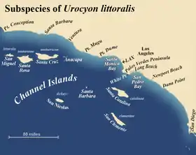 | Urocyon littoralis[2][3] سبنسر فولرتون بيرد ، 1858 | |