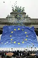 واعتبر عدد من البحاثة أن هذه النقاط تناسب مع "الإنجازات الأكثر إيجابية في أوروبا".[37] ويرتبط مفهوم الثقافة الأوروبية عمومًا إلى التعريف الكلاسيكي للعالم الغربي. في هذا التعريف، حدود الثقافة الغربية هي مجموعة من المبادئ الأدبية والعلمية والسياسية والفنية والفلسفية التي تميزها عن غيرها من الحضارات. تم جمع الكثير من هذه المعارف والمجموعة من التقاليد والمعرفة في القانون الغربي.[38] ولا تقتصر حدود الثفافة الأوروبية على القارة بل وصلت بفعل الهجرة الأوروبية خلال القرنين الثامن عشر والتاسع عشر، إلى الأمريكتين وأستراليا.