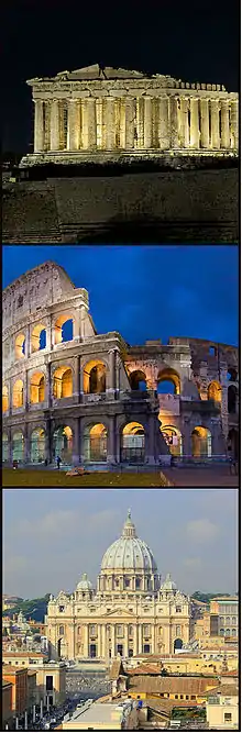غالبًا ما تصنف الحضارة الرومانية من ركائز الحضارة الغربية الرئيسية وضمن "العصور القديمة الكلاسيكية" مع اليونان القديمة التي ألهمت الكثير من ثقافة روما القديمة.[20][21][22] ساهمت روما القديمة إلى حد كبير في تطوير الحكومة والقانون والحرب والفن والأدب والهندسة المعمارية والتكنولوجيا والدين واللغة في العالم الغربي ولا يزال تاريخها ذا تأثير كبير على العالم اليوم.[23][24]