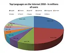 - "مستخدمي عالم الإنترنت حسب اللغة - أعلى عشر لغات" (باللغة إنجليزية). Internet World Stats. 30 يونيو 2010. مؤرشف من الأصل في 27 أبريل 2019. اطلع عليه بتاريخ 24 يناير 2011. الوسيط