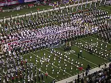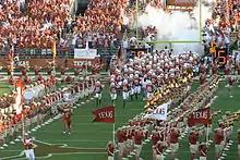 وتعتبر كرة القدم الأمريكية، والمعروفة بالإنكليزية باسم ملعب كرة القدم، اللعبة الأكثر شعبية في الولايات المتحدة.كما أن ال32 فريق التابعين للإتحاد الوطني لكرة القدم هم أكثر الفرق شعبية وهي الفرق الوحيدة التابعة للدوري الاميركي لكرة القدم. وتعد بطولة السوبر باول هي أكبر حدث رياضي سنوي يعقد في الولايات المتحدة.ويشاهد ملايين آخرون مباريات كرة القدم التي تقام في الكليات خلال أشهر الخريف، وفي بعض المجتمعات، ولا سيما في المناطق الريفية، مما يضفى أهمية كبيرة لفرقهم المدرسية المحلية.وتشمل مباريات كرة القدم الأمريكية عروض هتافية وفرق موسيقية لرفع الروح المعنوية المدرسية وتسلية الجمهور في وقت الراحة بين الشوطين.