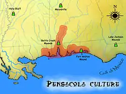 كانت كل من ثقافة بينساكولا و ثقافة فورت والتون القريبة مزيجًا من ثقافة جزيرة ويدن المتأخرة والتي سبقتها في المنطقة وتدفق ثقافة شعوب المسيسيبيين من الشمال. تم تصنيف ثقافة بينساكولا وفورت والتون معًا تحت اسم ثقافة بينساكولا من قِبل علماء الآثار وأطلقت تلك التسمية على مجموعة من المواقع التي تقع في خليج بينساكولا و خليج تشوكتاواتشي. ومع ذلك أدت مزيد من الدراسات المختلفة على مر السنين إلى قيام علماء الآثار بإعادة تصنيفها كثقافتين منفصلتين. وحددت الأبحاث الأثرية أيضًاً أن موقع بوتل كريك (أكبر موقع لثقافة بينساكولا، والذي يقع شمال خليج موبايل) كان المركز الفعلي للثقافة وأن هناك المزيد من مواقع بينساكولا في تلك المنطقة وحول خليج بيرديدو منطقة بينساكولا.[2]