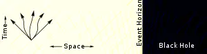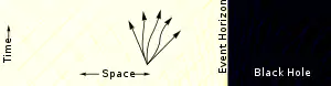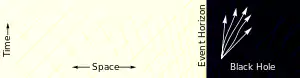 كما تنبأت النسبية العامة، فإن وجود جسم بكتلة يحدث تشوها بالزمكان بحيث تنحرف المسارات التي تتخذها الجزيئات نحو الكتلة. [55] في أفق الحدث لثقب أسود، يصبح هذا التشوه قويًا جدًا بحيث لا توجد مسارات تؤدي بعديا عن الثقب الأسود. [70]