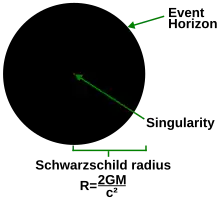 حيث rs هي نصف قطر شفارتزشيلد و MSun هي كتلة الشمس. [1] بالنسبة إلى الثقب الأسود الذي يحمل قيم لا صفرية لكل من الدوران والشحنة، يكون نصف القطر أصغر، [Note 2] بحيث يتمكن الثقب الأسود المتطرف من الحصول على أفق حدث قريب جدا. [67]