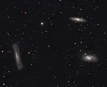 م65 هي مجرة حلزونية تبعد عن كوكبة الأسد 22 مليون سنة ضوئية، ويبلغ قدرها الظاهري 10,25. أما م66 فهي تبعد عن كوكبة الأسد 36 سنة ضوئية ويبلغ قدرها 8,9. أما NGC 3628 فهي تبعد 35 سنة ضوئية عن كوكبة الأسد.