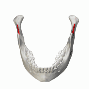 ![]() ثلمة الفك السفلي موضحة باللون الأحمر ضمن عظم الفك السفلي ثلمة الفك السفلي موضحة باللون الأحمر ضمن عظم الفك السفلي | |