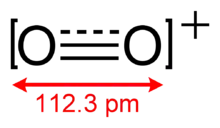 لأيون +O2 رتبة رابطة مقدارها 2.5، وطول رابطة مقدارها 112.3 بيكومتر في وسط شبكي من [O2[AsF6 الصلب،[2] وله نفس العدد من إلكترونات التكافؤ مثل أكسيد النتريك وله مغناطيسية مسايرة،[3] أما طاقة الرابطة فتبلغ 625.1 كيلوجول/مول، في حين أن تردد الامتطاط مقداره 1858 سم-1.[4]