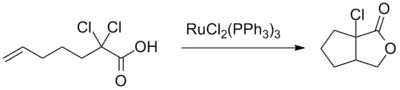 - 2 RuCl3(H2O)3 + 7 PPh3 → 2 RuCl2(PPh3)3 + 2 HCl + 5 H2O + 1 OPPh3